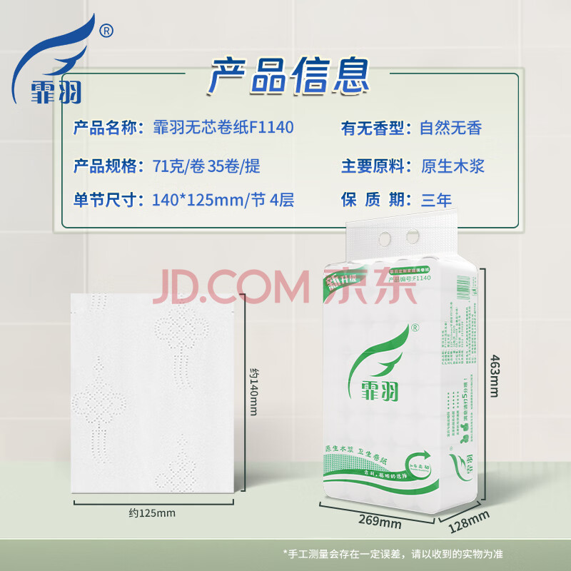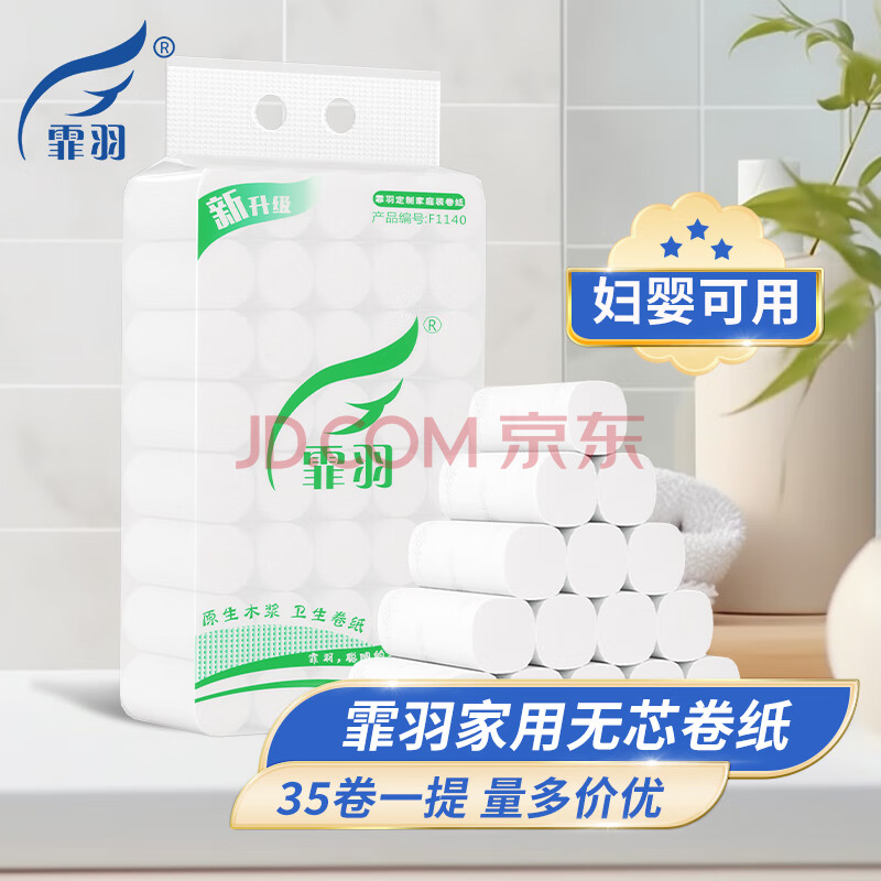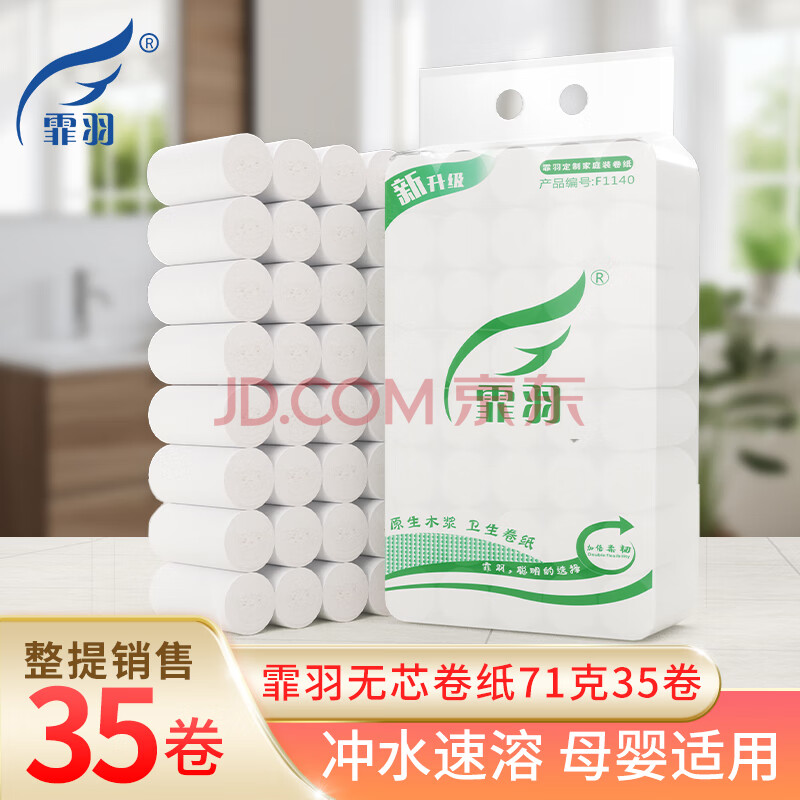 商品相册:霏羽卷纸卫生纸无芯4层71克*35卷卫生纸巾厕纸手纸5斤家用实惠装第