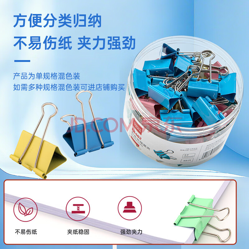 商品相册:齐心(COMIX)【超级爆款】40只19mm长尾夹票夹 5#小号燕尾夹 彩色金属票据文件夹子文具办公 40只/筒 EB402第