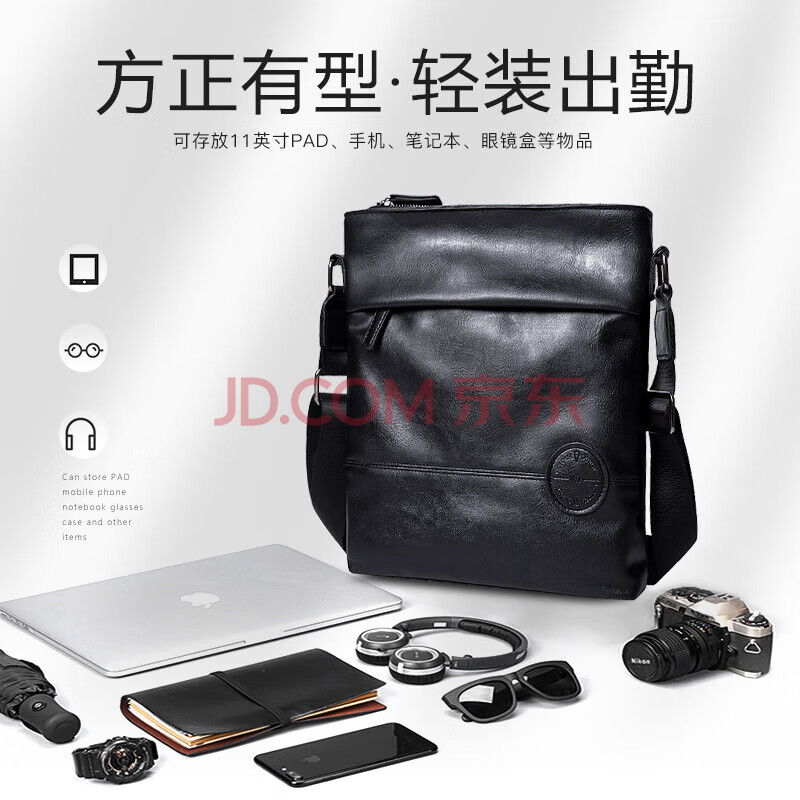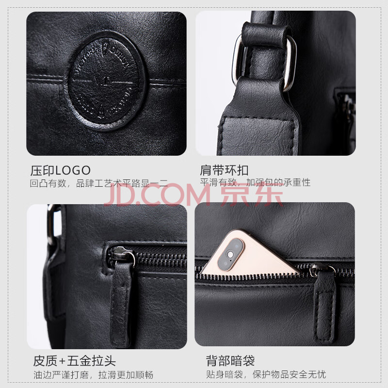 商品相册:VICTORIATOURIST斜挎包单肩包男士商务斜挎包休闲竖款皮革大容量挎包邮差包5113第