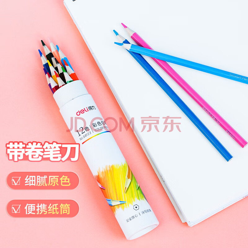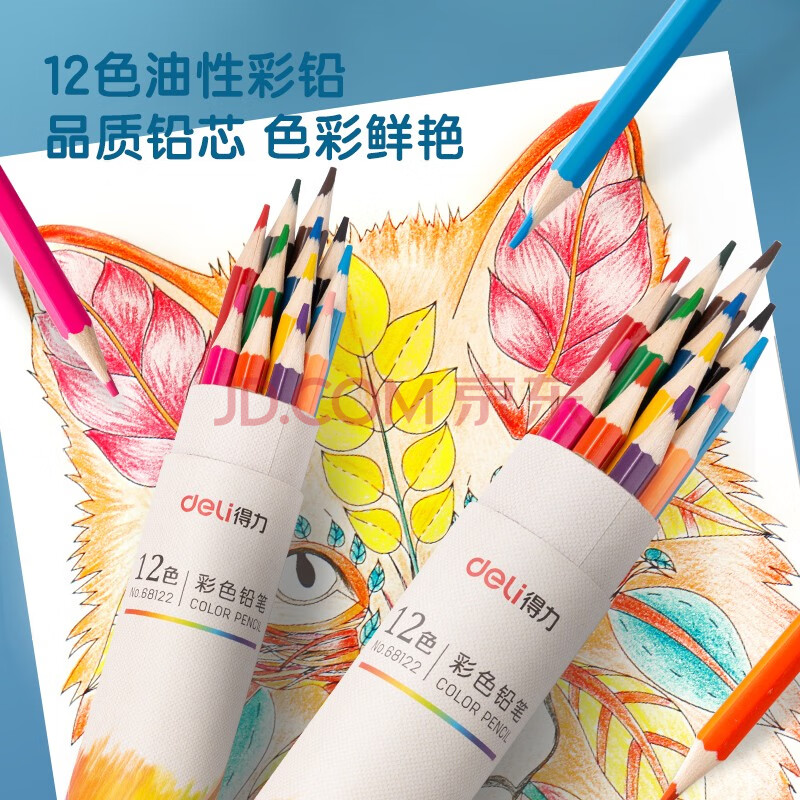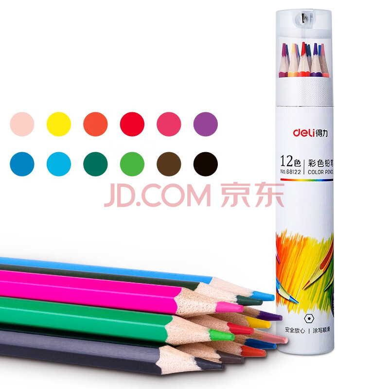 商品相册:得力(deli)12色纸筒彩铅彩色铅笔手绘涂色专业美术生绘画笔套装(附带卷笔刀)女孩儿童礼物速写彩笔第