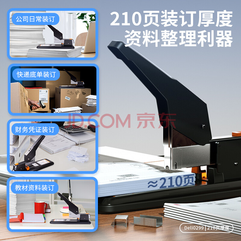 商品相册:得力(deli)(deli)210页简约重型大订书机/订书器 大号加厚重型订书机 弹出式结构 黑色0299第