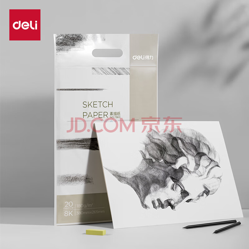 商品相册:得力(deli)20张加厚8K素描纸180g素描本绘画纸彩铅画手绘临摹学生铅画纸8开第