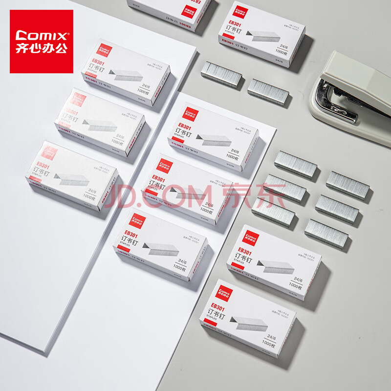 商品相册:齐心(COMIX)【超级爆款】10000枚强穿透订书钉 24/6 12#订书针 1000枚/盒 10盒装 办公用品工具EB301第