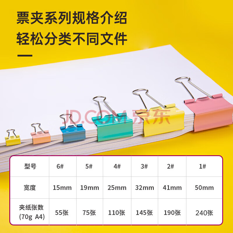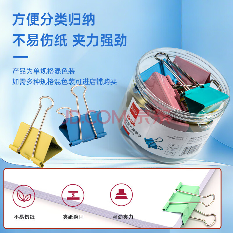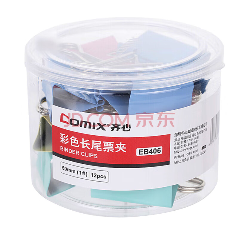 商品相册:齐心(COMIX)【超级爆款】12只50mm长尾夹票夹 1#超大号燕尾夹 彩色金属票据文件夹子文具办公 12只/筒 EB406第