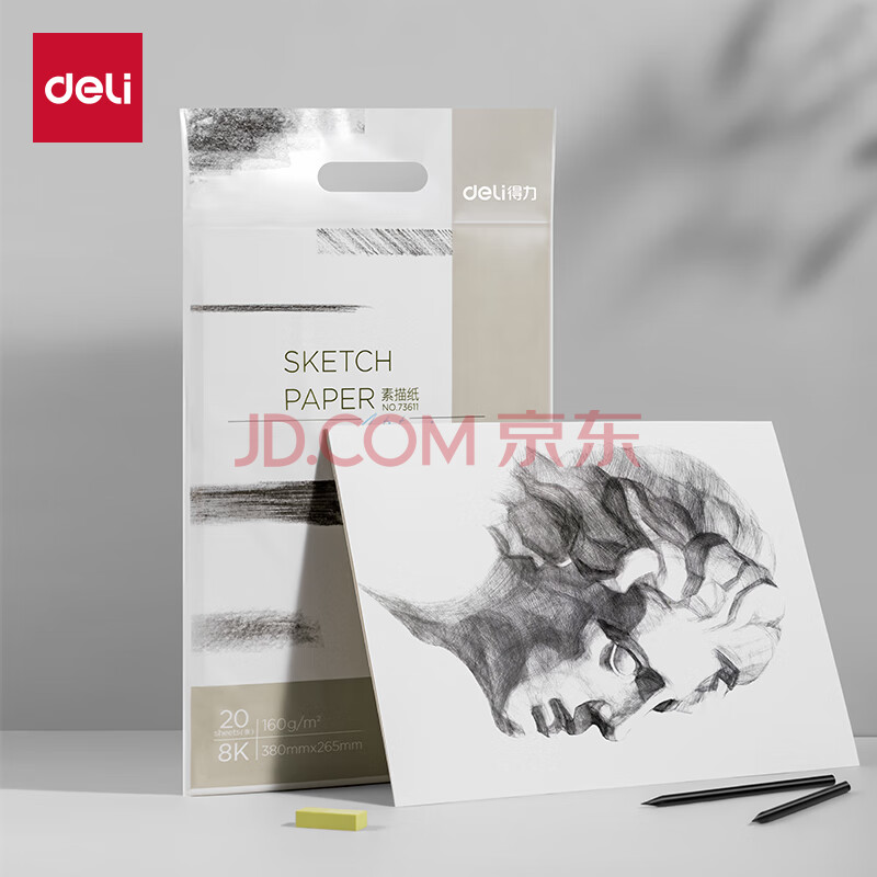 商品相册:得力(deli)20张8K加厚素描纸160g素描本绘画纸彩铅画手绘临摹铅画纸女孩儿童第