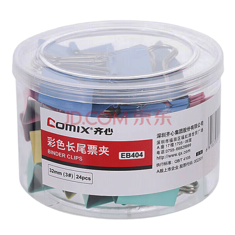 商品相册:齐心(COMIX)【超级爆款】24只32mm长尾夹票夹 3#中号燕尾夹 彩色金属票据文件夹子文具办公 24只/筒 EB404第