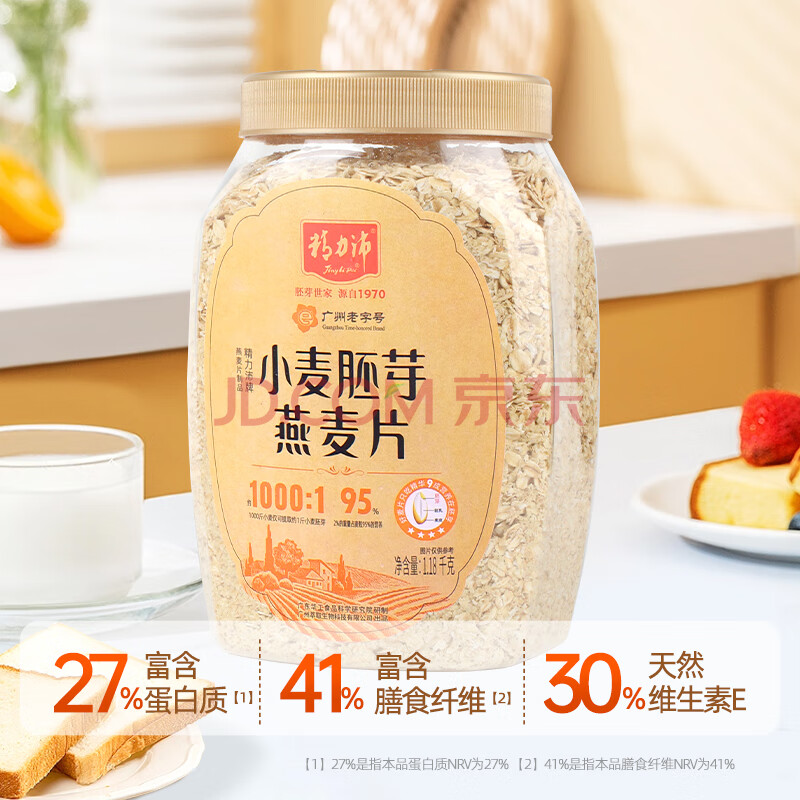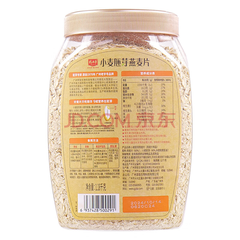 商品相册:精力沛小麦胚芽燕麦片1180g/罐 富含高纤维蛋白质营养即食冲泡早餐第