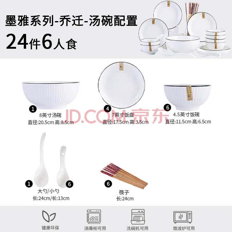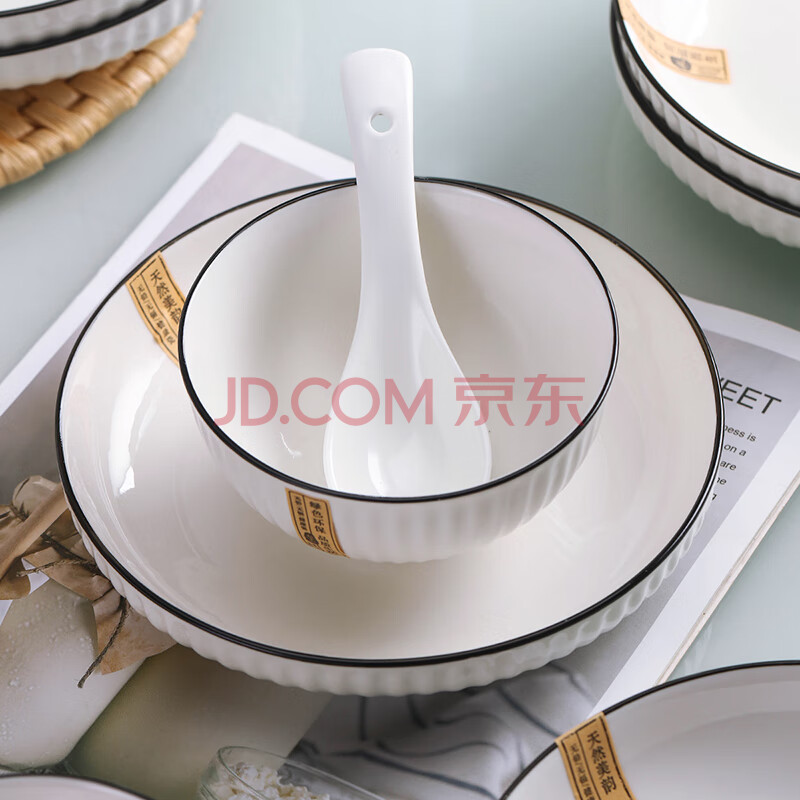 商品相册:浩雅釉下彩景德镇家碗碟套装陶瓷餐具碗盘筷勺组合山田竖纹24头第