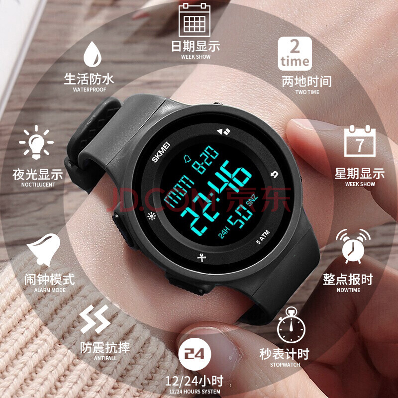 商品相册:时刻美(skmei)学生初高中生儿童青少年运动电子手表防水闹钟看时间生日礼物1445第