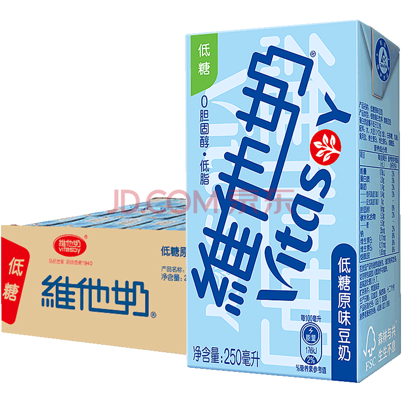 商品相册:维他奶低糖原味豆奶植物蛋白饮料 250ml*24盒 低糖早餐豆奶 开学季第