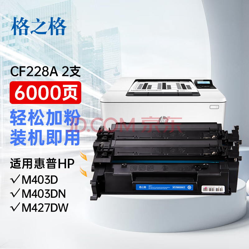 商品相册:格之格228a硒鼓 易加粉双支装适用惠普403d硒鼓 m427dw m427fdw m427fdn m403n m403dn m403dw打印机28a硒鼓第