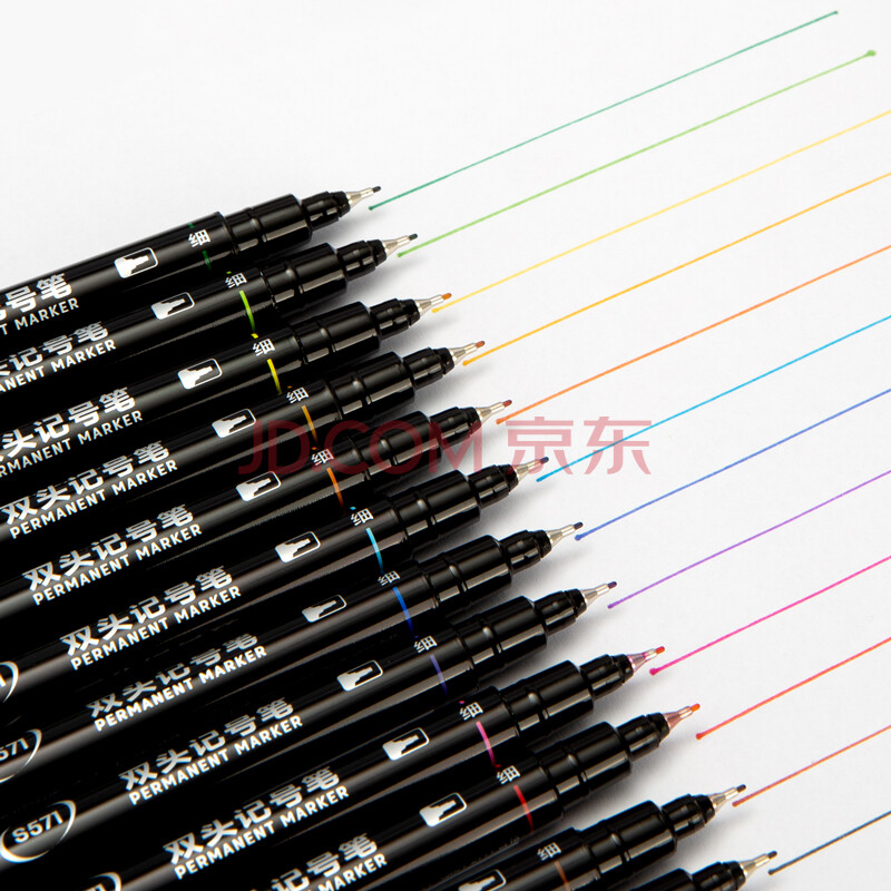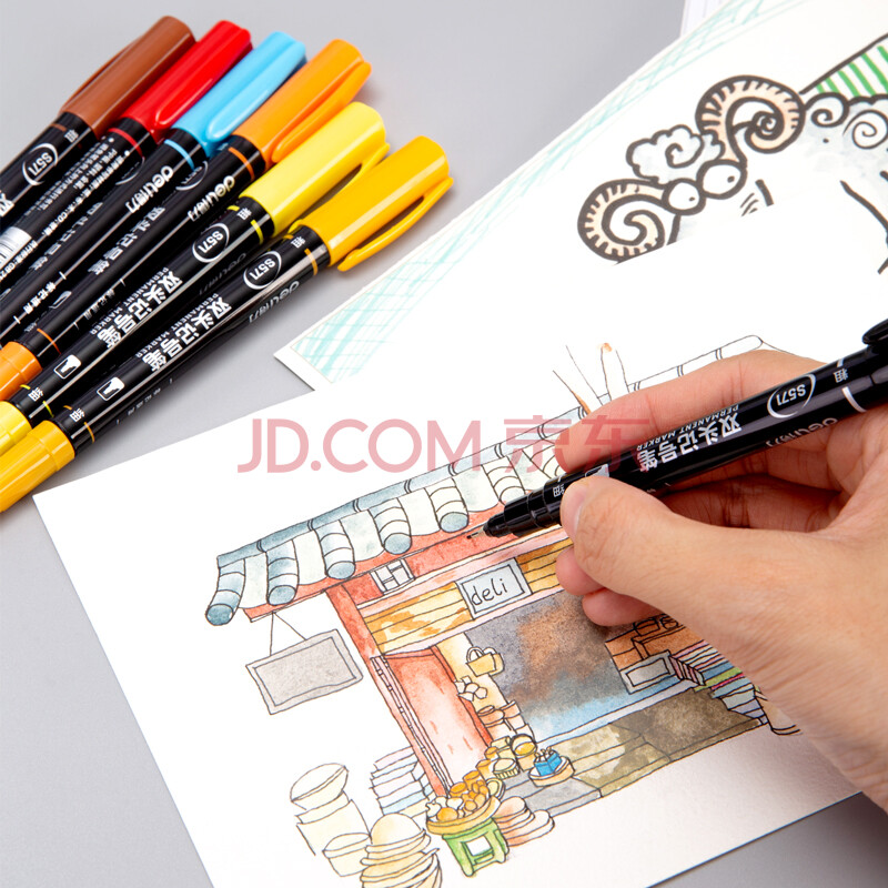商品相册:得力(deli)彩色双头记号笔勾线笔马克笔套装 绘画涂鸦彩绘笔 12色DL-S571第