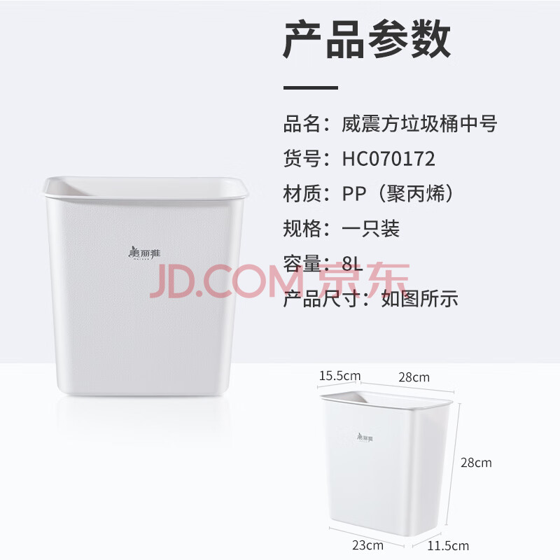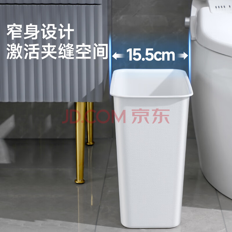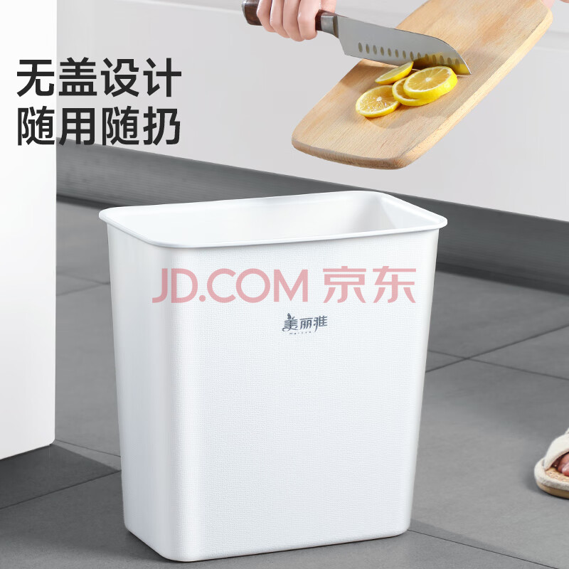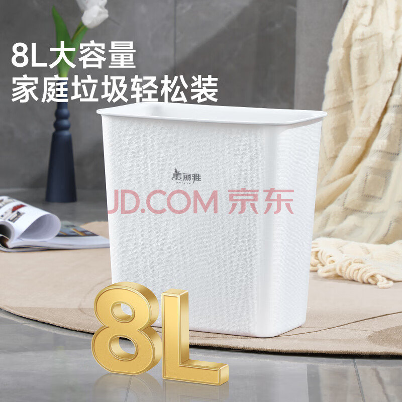 商品相册:美丽雅垃圾桶无盖8L大号白色厨房卫生间办公室客厅窄缝干湿分离垃圾桶第