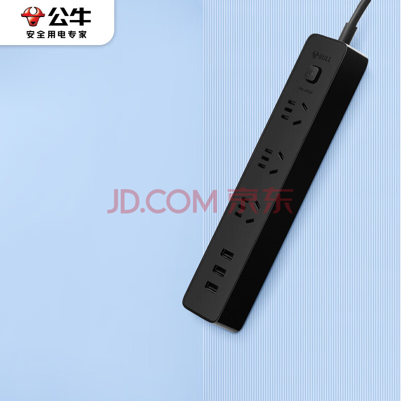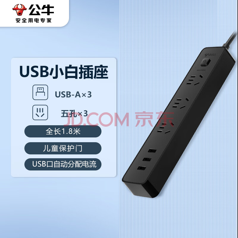 商品相册:公牛(BULL)公牛小黑USB插座 插线板/插排/排插/拖线板 GN-B403H 3usb接口+3孔全长1.8米 总控开关第