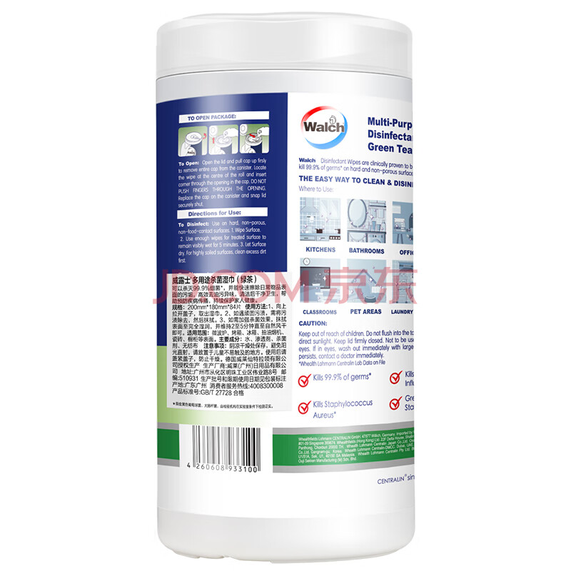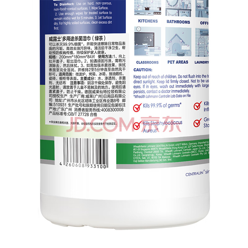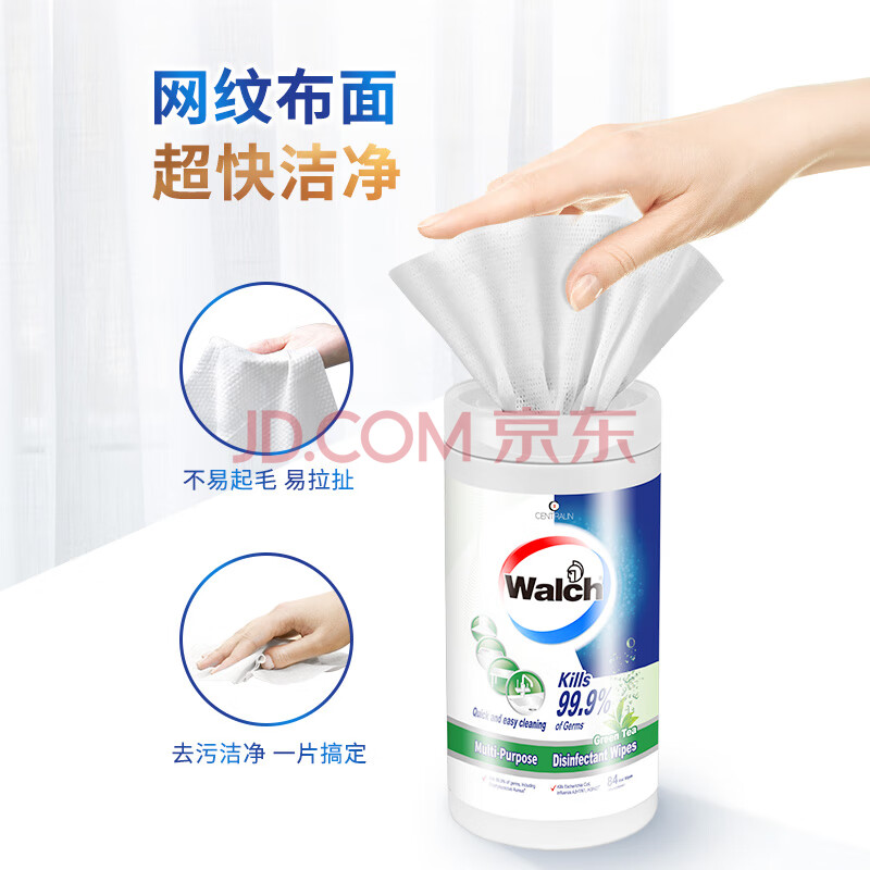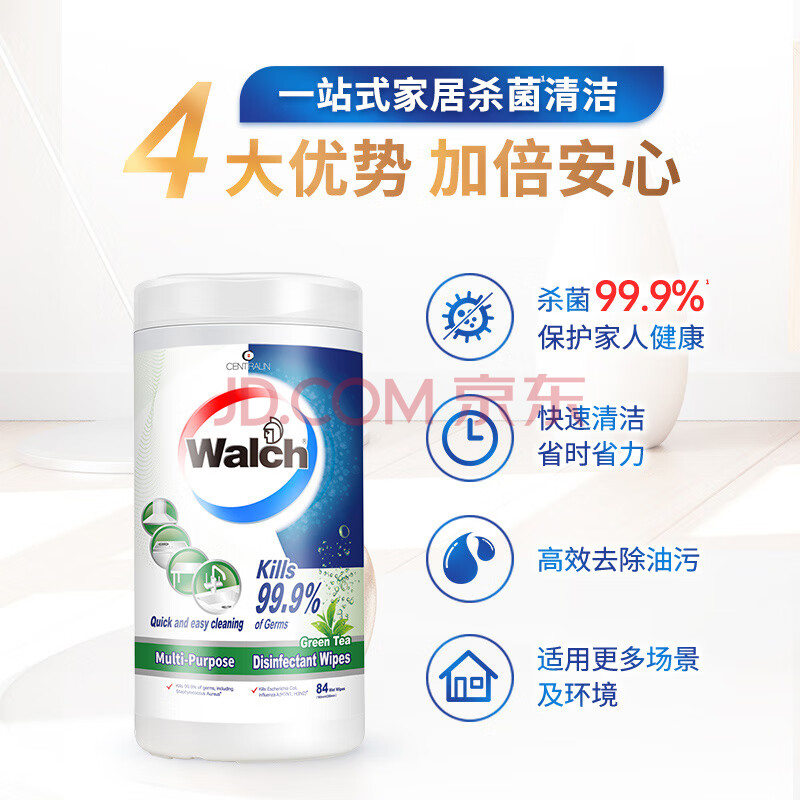 商品相册:威露士多用途杀菌湿巾 绿茶84片*1筒 高效去油污 有效杀菌99.9%第