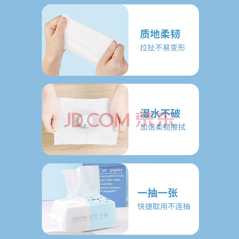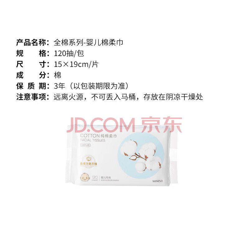 商品相册:名创优品(MINISO)全棉系列洗脸巾一次性棉柔巾洗面巾120抽*1包(婴儿可用)第