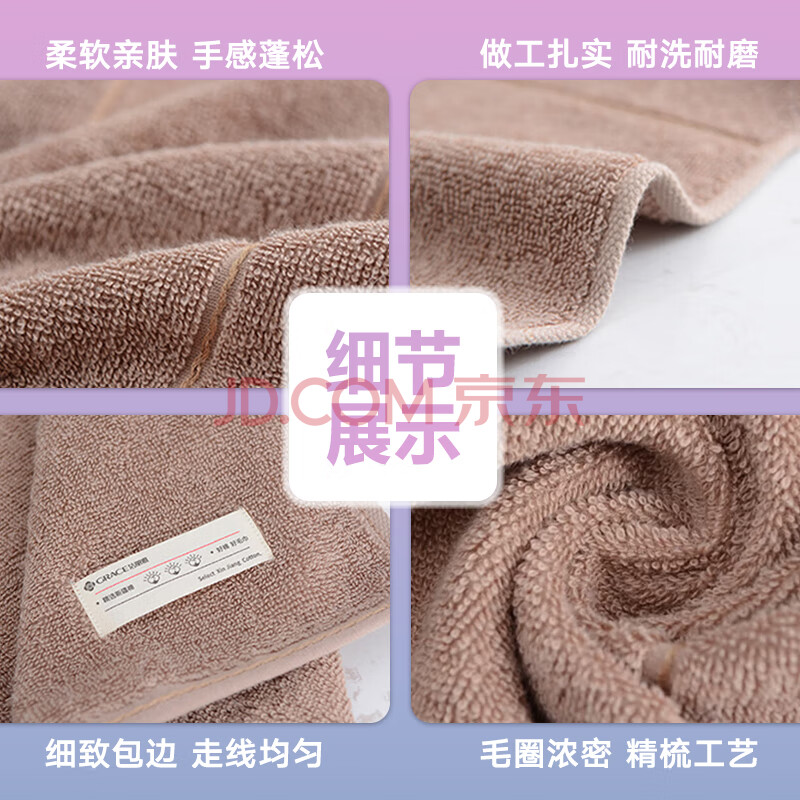 商品相册:洁丽雅(Grace)7A抗菌毛巾加厚加大纯棉成人素色良品洗脸大毛巾2条装 棕色+灰色第
