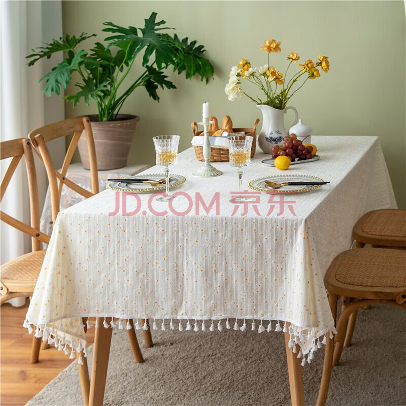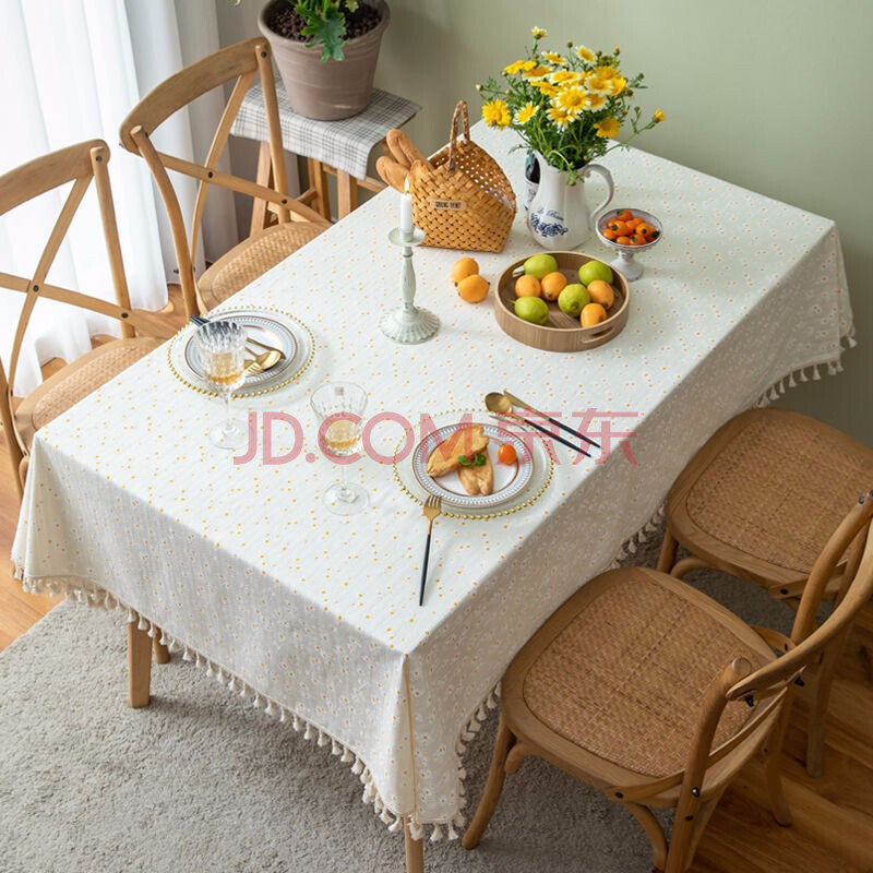 商品相册:艾薇棉麻桌布布艺餐桌布茶几台布书桌长方形餐桌垫140*180黄色小雏菊第