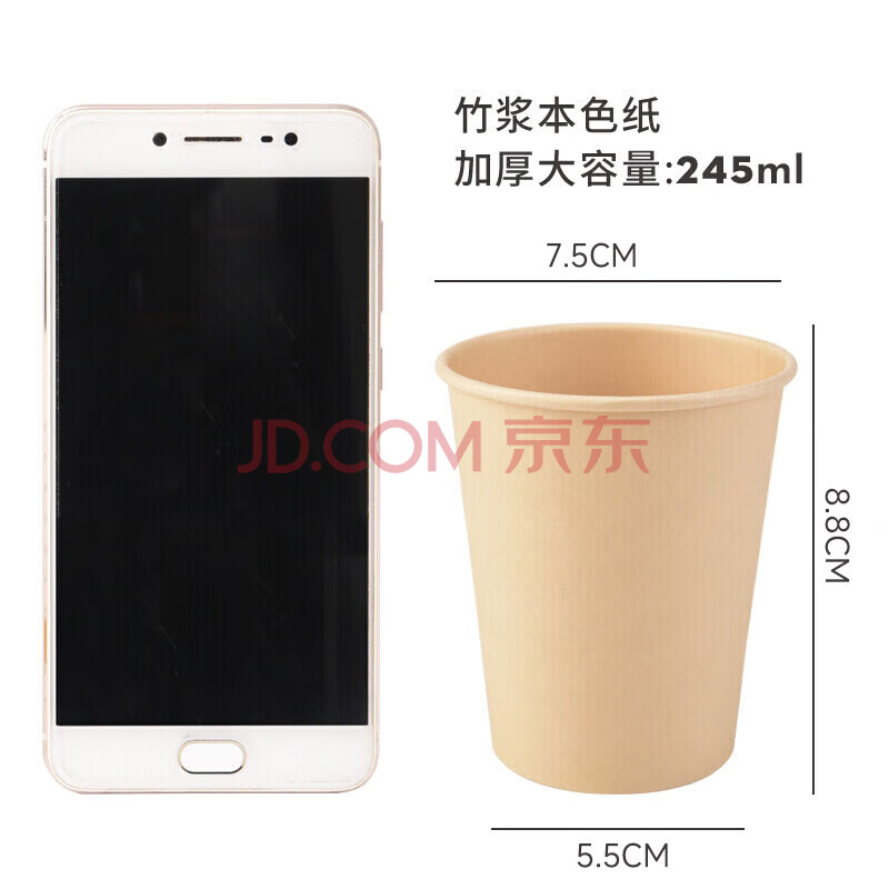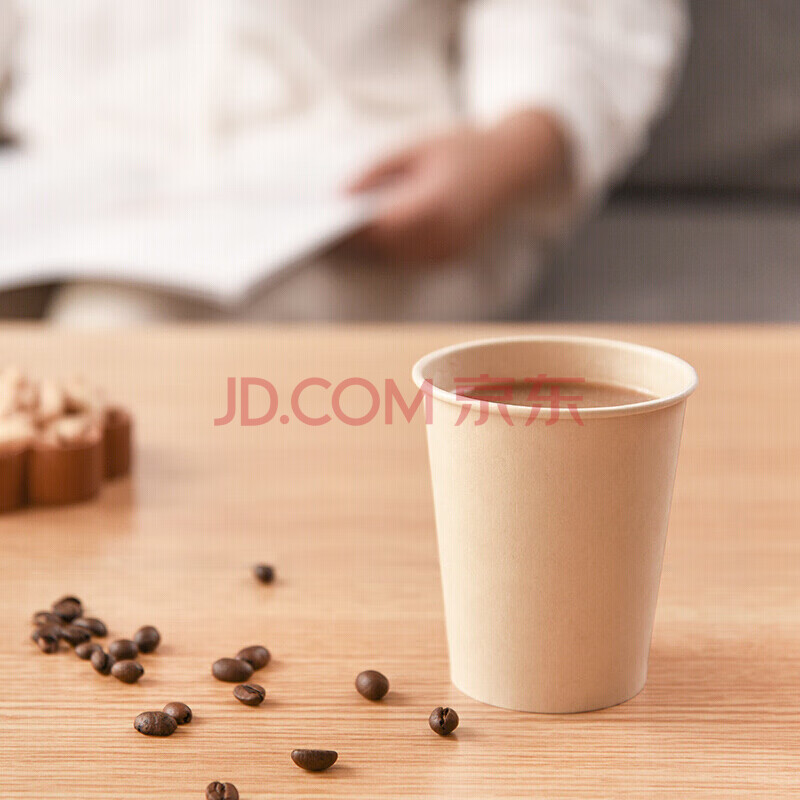 商品相册:百草园纸杯一次性杯子245ml加厚1000只整箱9盎司竹浆本色无印咖啡杯水杯第
