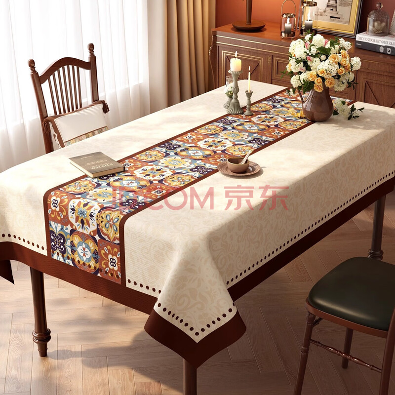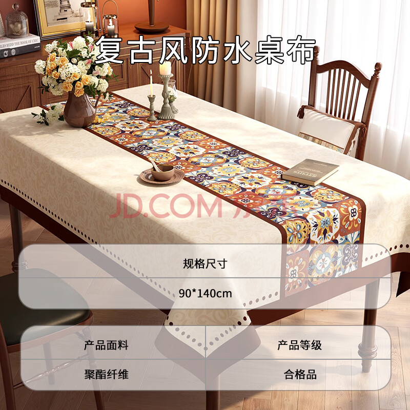 商品相册:艾薇复古风桌布防水防油餐桌布白色长方形茶几台布桌垫140*180玛戈尔第
