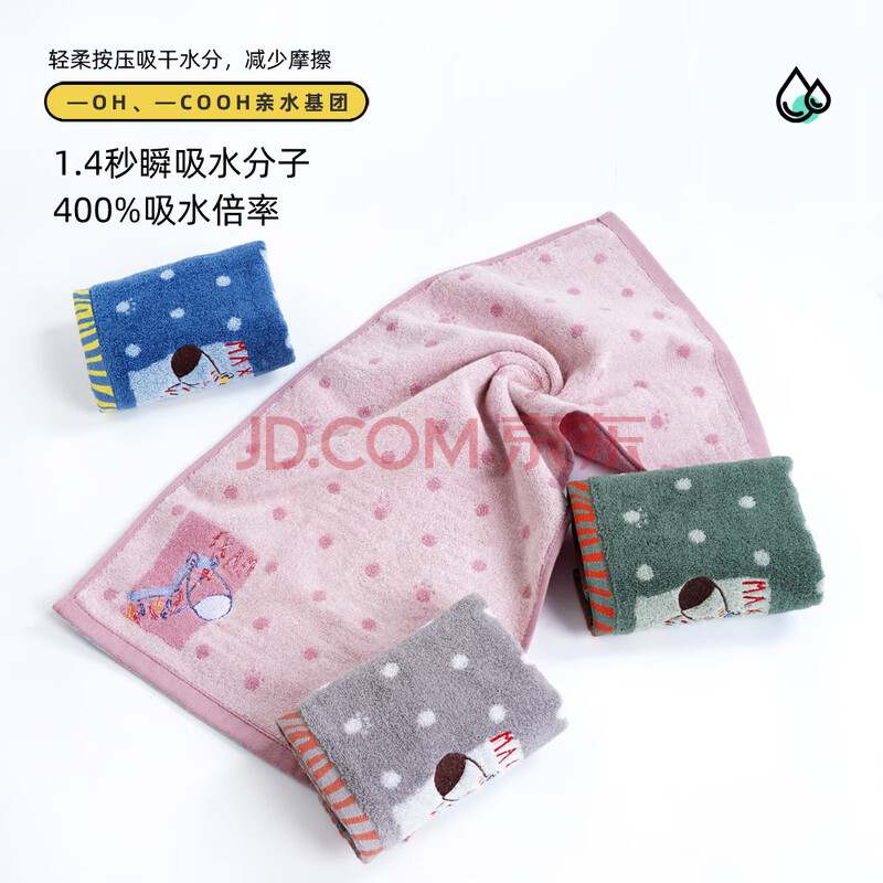 商品相册:金号A类儿童毛巾纯棉100%洗脸女士小毛巾洗脸帕双层无捻提缎4条第