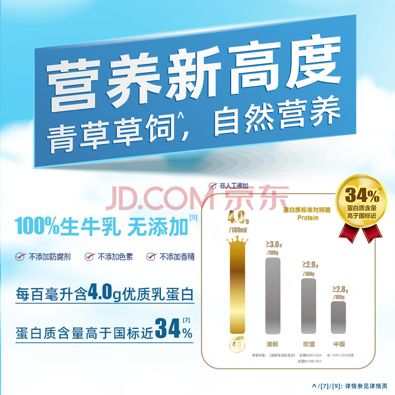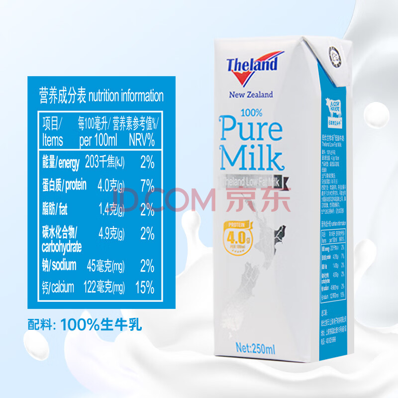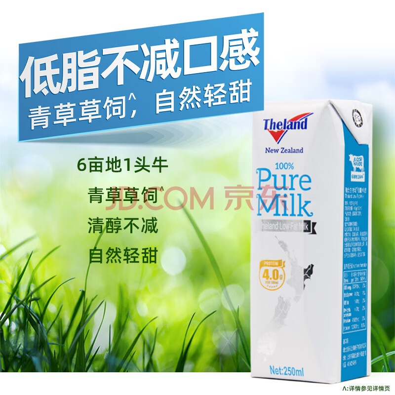 商品相册:纽仕兰新西兰草饲4.0g蛋白高钙低脂纯牛奶100%生牛乳250ml*24盒第