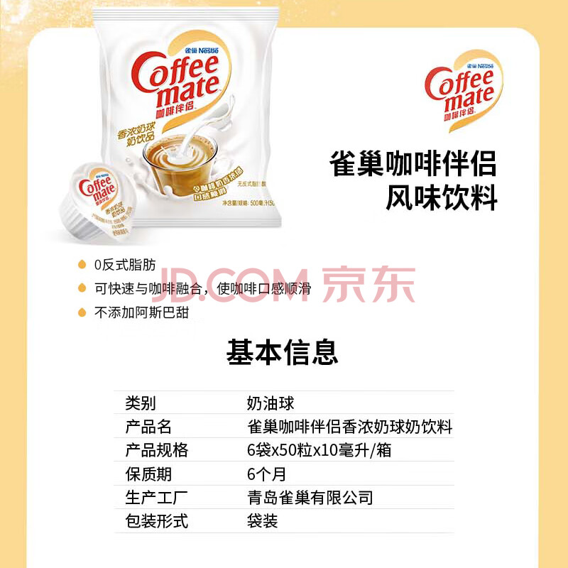 商品相册:雀巢(Nestle)咖啡奶茶伴侣 香浓10ml*50粒 含生牛乳 奶油球 0反式脂肪酸第1张/共9