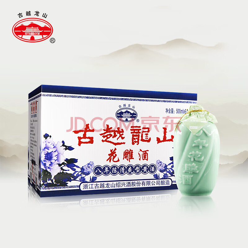 商品相册:古越龙山青瓷花雕八年 半甜型 绍兴黄酒 500ml*6瓶 整箱装第