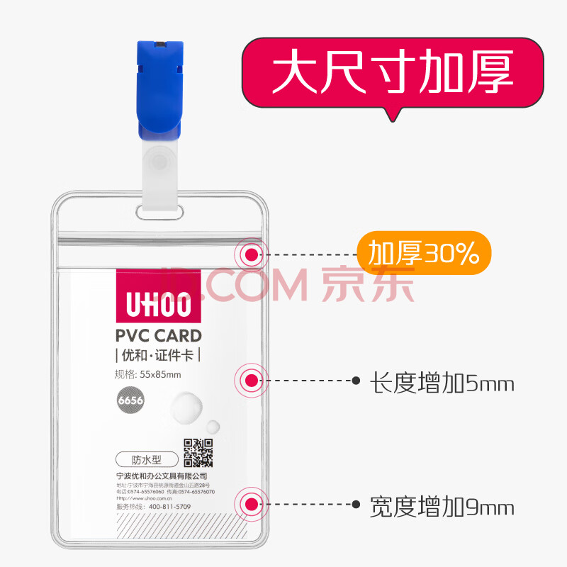 商品相册:优和(UHOO)【超级爆款】防水PVC证件卡套 横式 透明 24个卡套 24个夹扣 工作牌员工牌胸卡 6655-2第