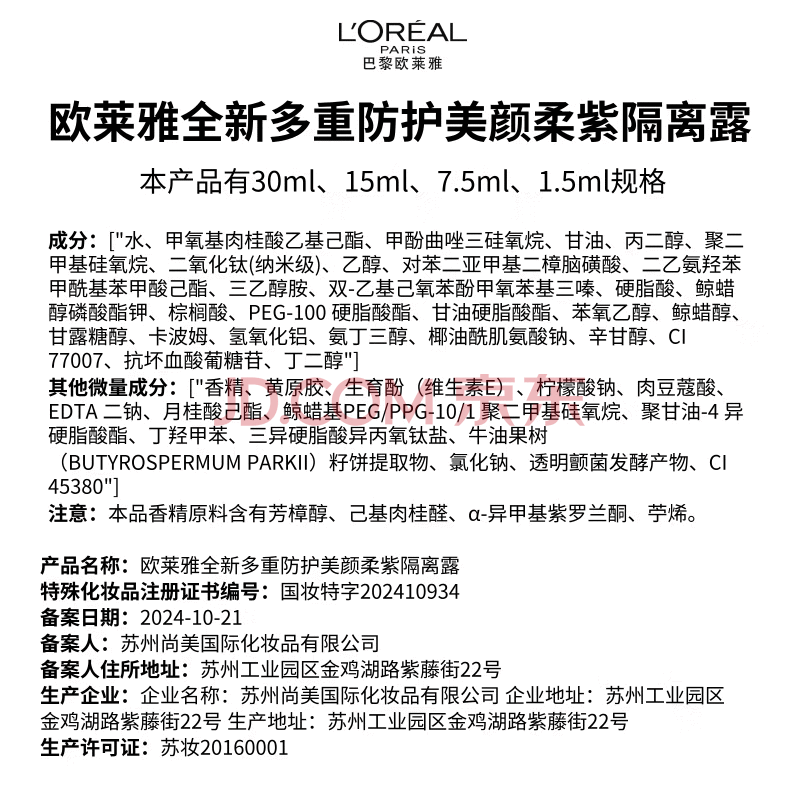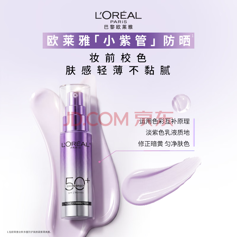 商品相册:欧莱雅小紫管美白防晒霜30ml美颜柔紫户外隔离霜护肤品生日礼物送女友第