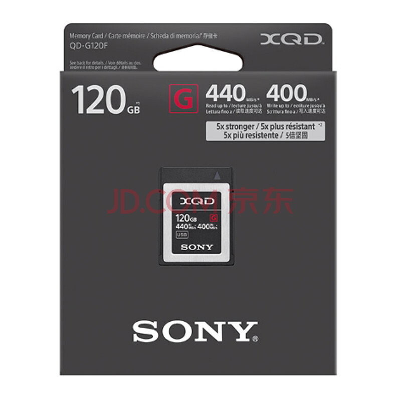 商品相册:索尼(SONY)120GB XQD存储卡 G系列 QD-G120F 4K视频录制 读速440MB/s写速400MB/s第