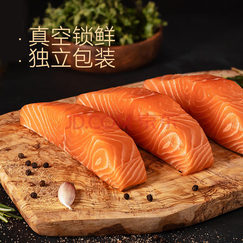 商品相册:美威冷冻智利严选三文鱼排中段4块净重480g大西洋鲑鱼 进口鱼类 海鲜第