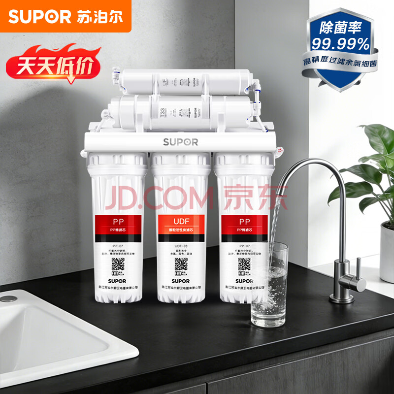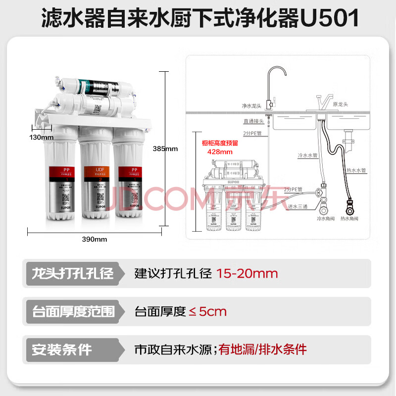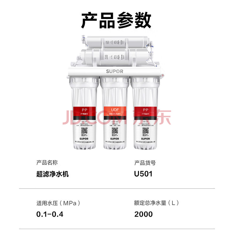 商品相册:苏泊尔(SUPOR)厨下净水器超滤机家用简约款 0阻垢剂净水机自来水净化器便捷换滤芯台式过滤器2年超滤膜U501第