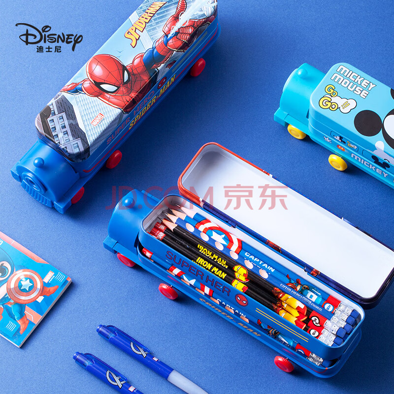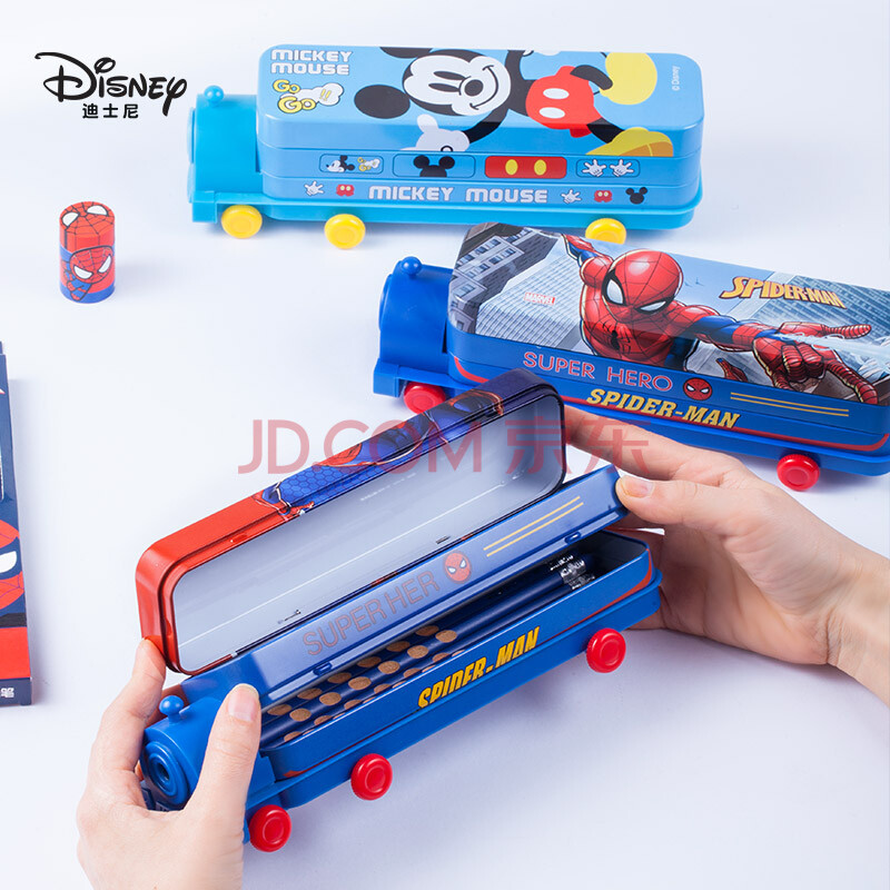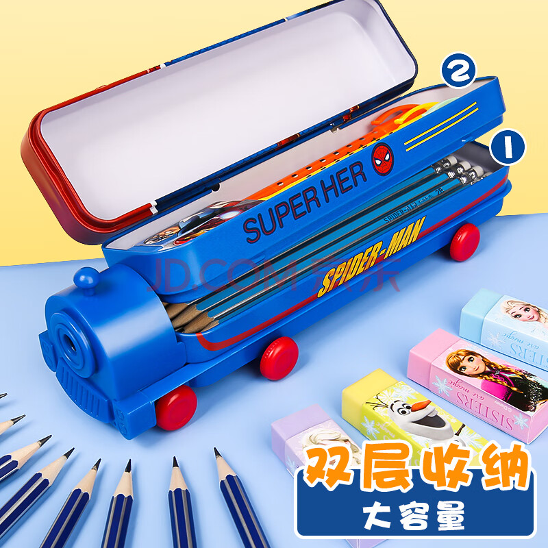 商品相册:迪士尼(Disney)笔盒蜘蛛侠双层大容量铅笔盒火车头幼儿园文具盒带削笔器男孩 小学生学习用品开学清单 DM29175A3第