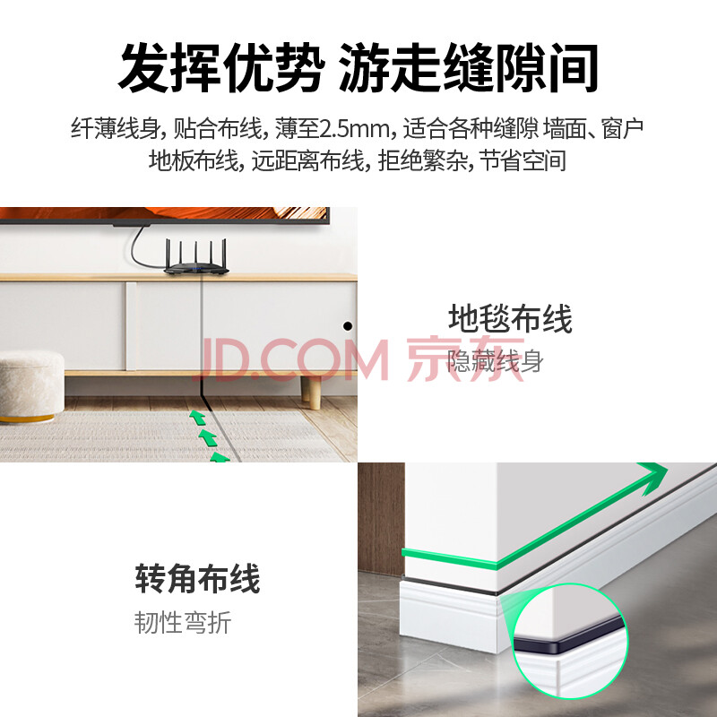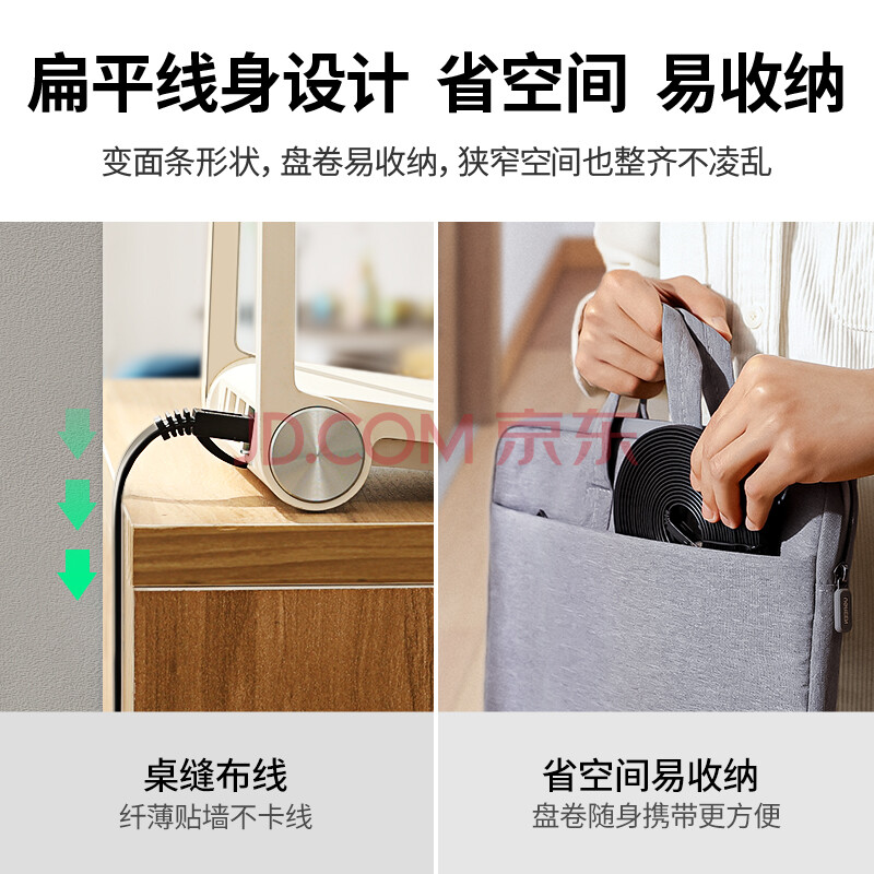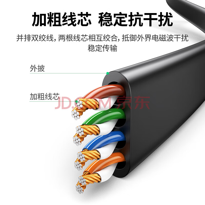 商品相册:绿联六类网线 千兆网络宽带线 CAT6类家用电脑监控扁平网线 8芯双绞成品跳线 2米 黑色50174第