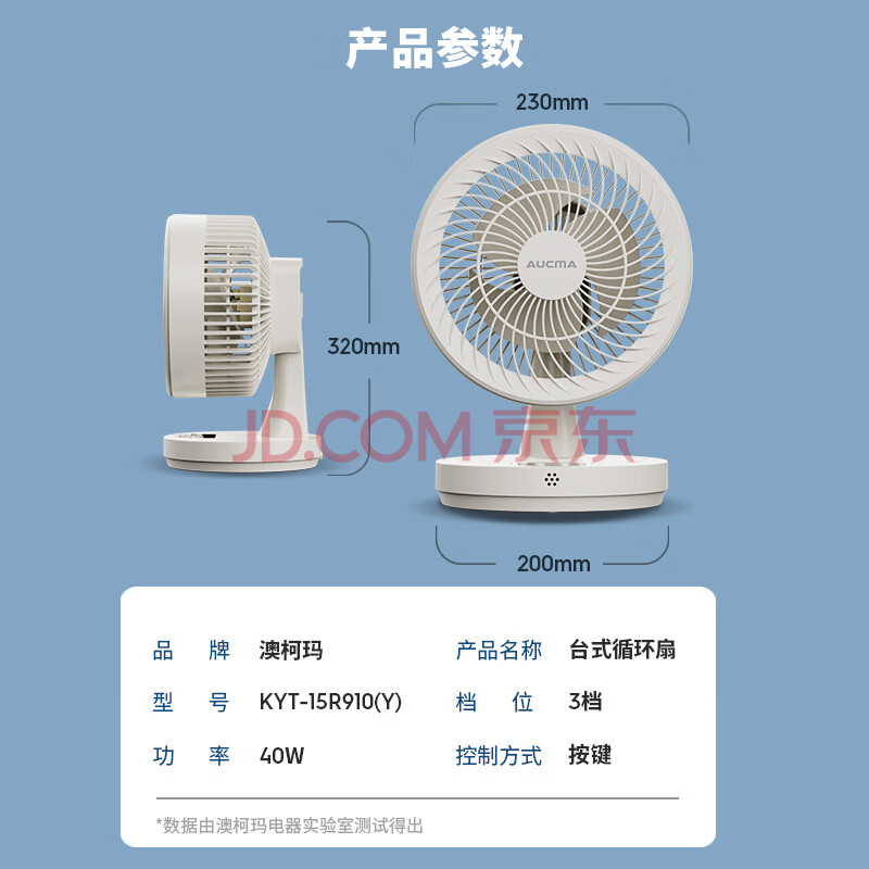 商品相册:澳柯玛空气循环扇/风扇宿舍安静定时家用卧室床头轻音电风扇/台式小风扇办公室厨房/桌面小型台扇R910(Y)第