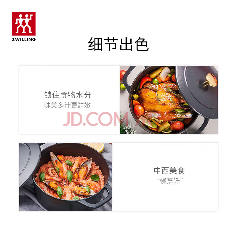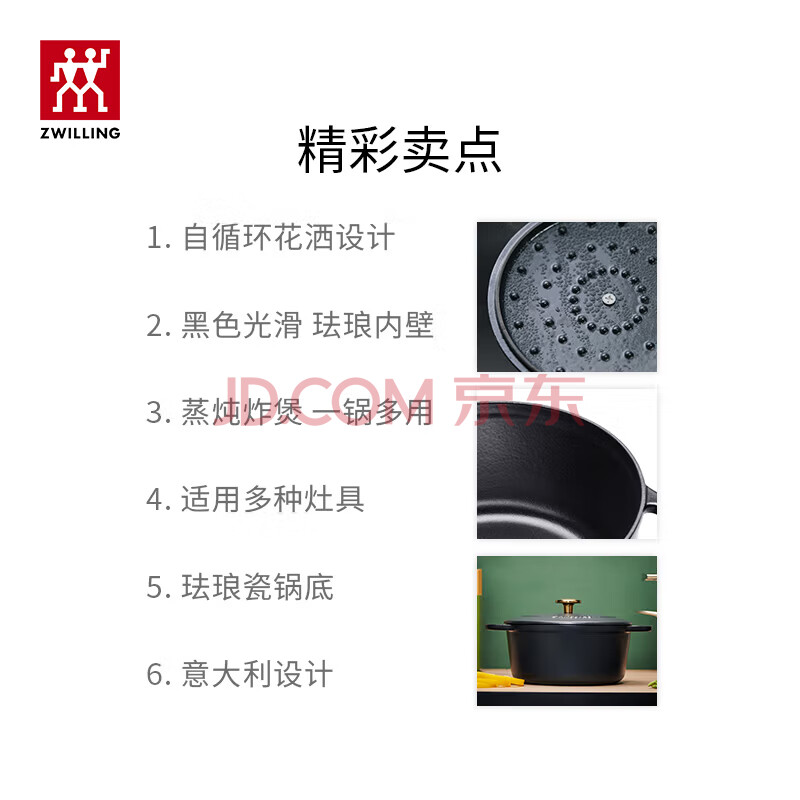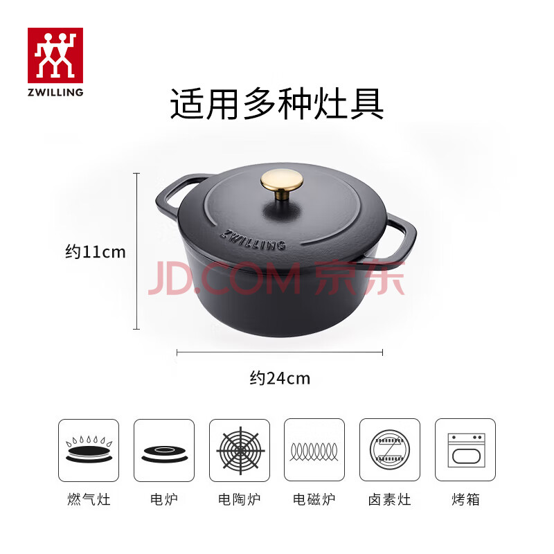 商品相册:双立人(ZWILLING)珐琅锅铸铁锅汤锅圆形炖锅煲汤锅炖汤锅电磁炉通用 哑光黑24cm第
