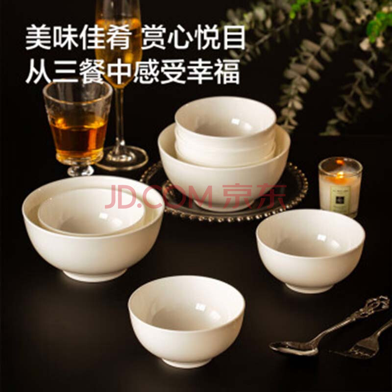 商品相册:京东京造 碗盘餐具整套 碗具套装乔迁之喜骨瓷陶瓷家用 饭碗4.5英寸*6第1张/共6
