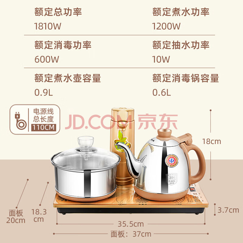 商品相册:金灶(KAMJOVE)自动上水烧水壶电热水壶 茶具电茶炉保温恒温0.9L电茶盘 全智能电茶炉烧水壶V2 20*37第