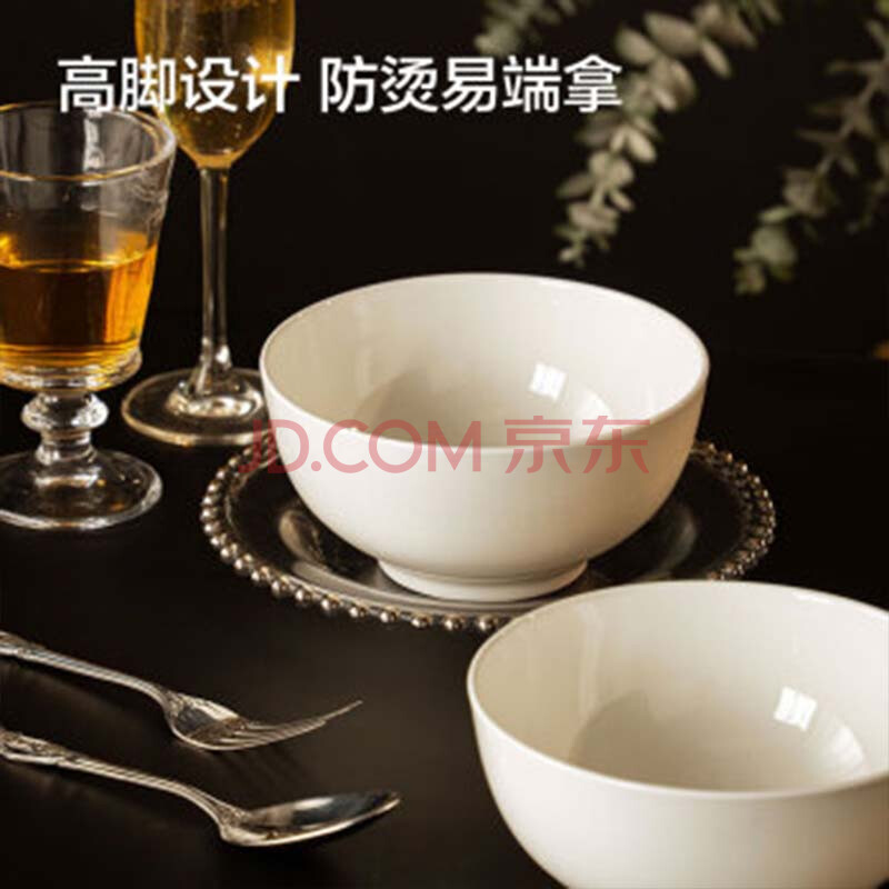 商品相册:京东京造 餐具套装 乔迁之喜陶瓷家用陶瓷汤碗 纯白骨瓷 面碗6英寸*2第