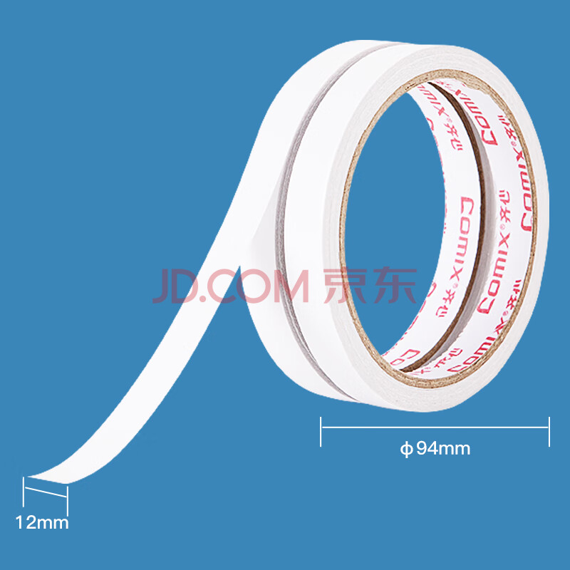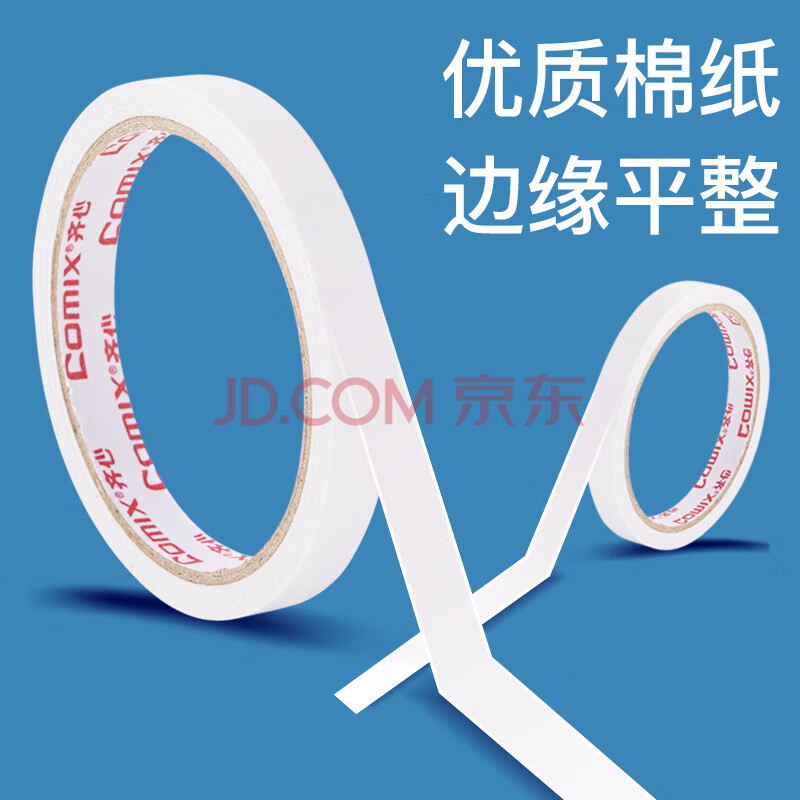 商品相册:齐心(COMIX)双面胶带高粘性棉纸双面胶易撕易贴 白色单卷装12mm*10y 办公用品凑单工具 MJ1210第