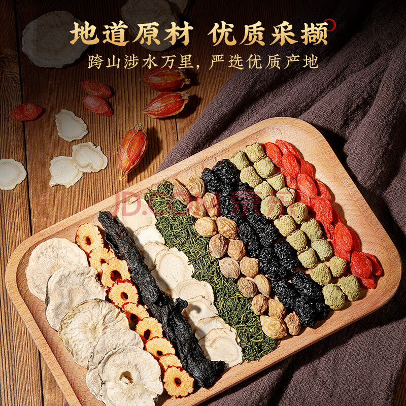 商品相册:南同四海京同仁堂人参黄精杜仲雄花五宝茶包八枸杞桑葚红枣覆盆子泡养生茶第