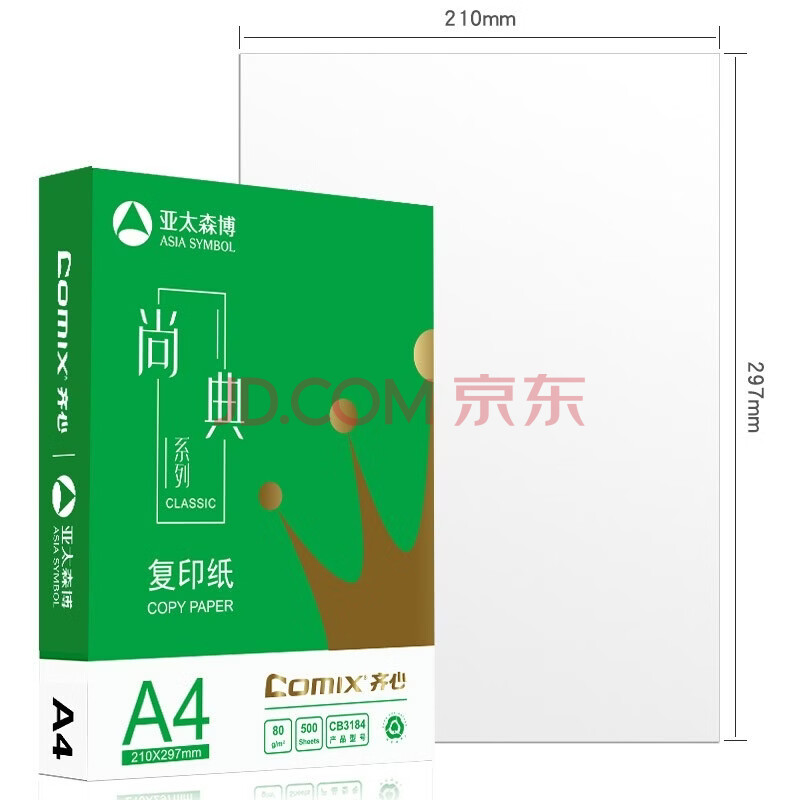 商品相册:齐心(COMIX)绿尚典A4打印纸 80g 500张*5包 双面丝滑畅打a4复印纸 办公传真学生绘图 整箱2500张【热销爆款】第