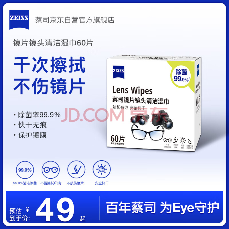商品相册:蔡司擦镜纸 相机眼镜片镜头擦镜纸清洁湿巾60片装第