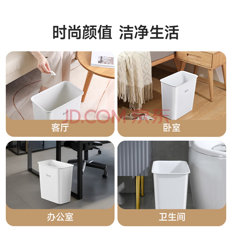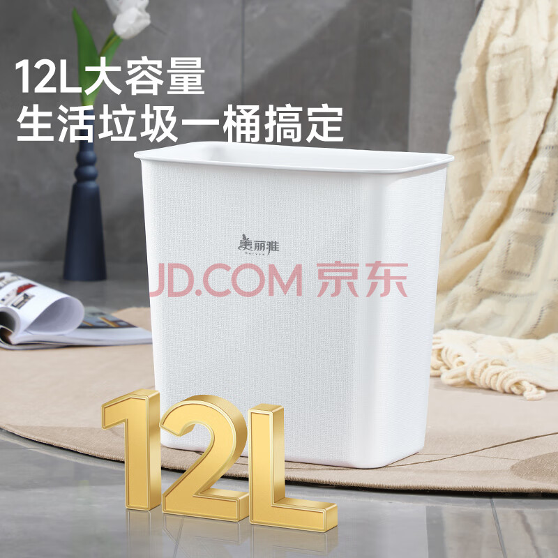 商品相册:美丽雅无盖垃圾桶12L大号方形白色家用厕所卧室客厅宿舍办公窄缝垃圾桶第