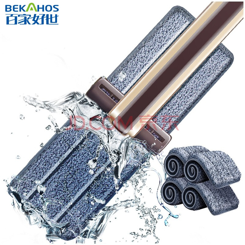 商品相册:百家好世 平板拖把33cm4布免手洗家用脱水拖地神器尘推平拖第