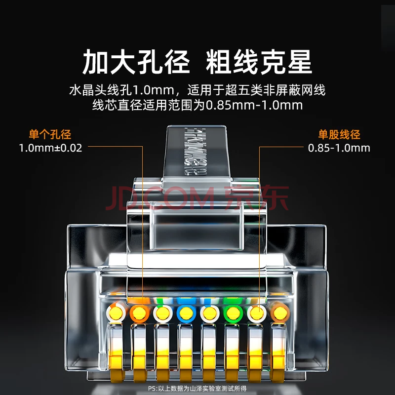 商品相册:山泽 超五类网线水晶头 50U镀金工程级RJ45网线连接器 cat5e千兆网络接头 超5类网络水晶头100个 C550U第
