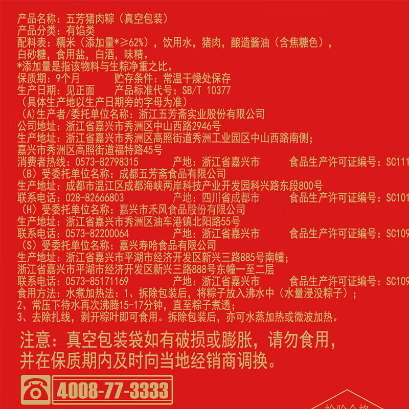 商品相册:五芳斋粽子 五芳猪肉粽140g*2只 中华老字号 端午节粽子嘉兴特产第