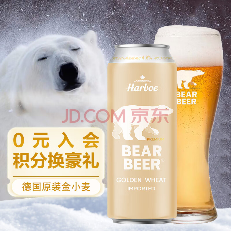 商品相册:豪铂熊(BearBeer)德国精酿金小麦白啤酒500ml*24听 整箱装 京东自营 春日聚会畅饮第