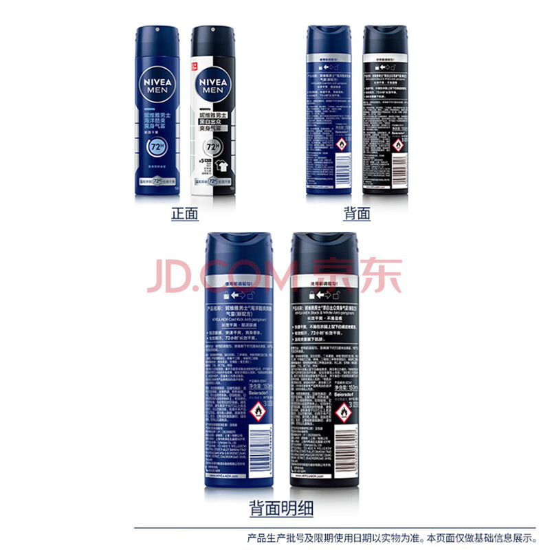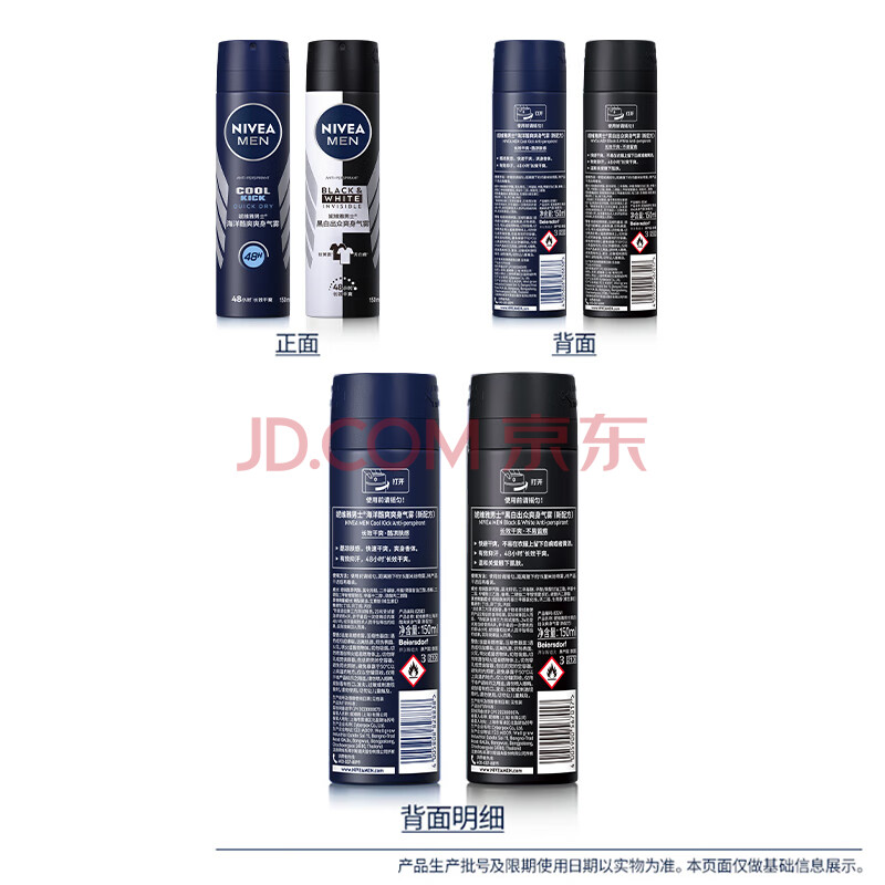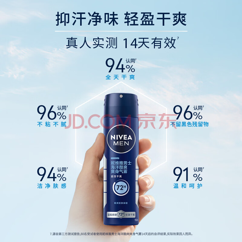 商品相册:妮维雅(NIVEA)男士海洋酷爽爽身气雾150ml男士专用止汗露干爽腋下喷雾第